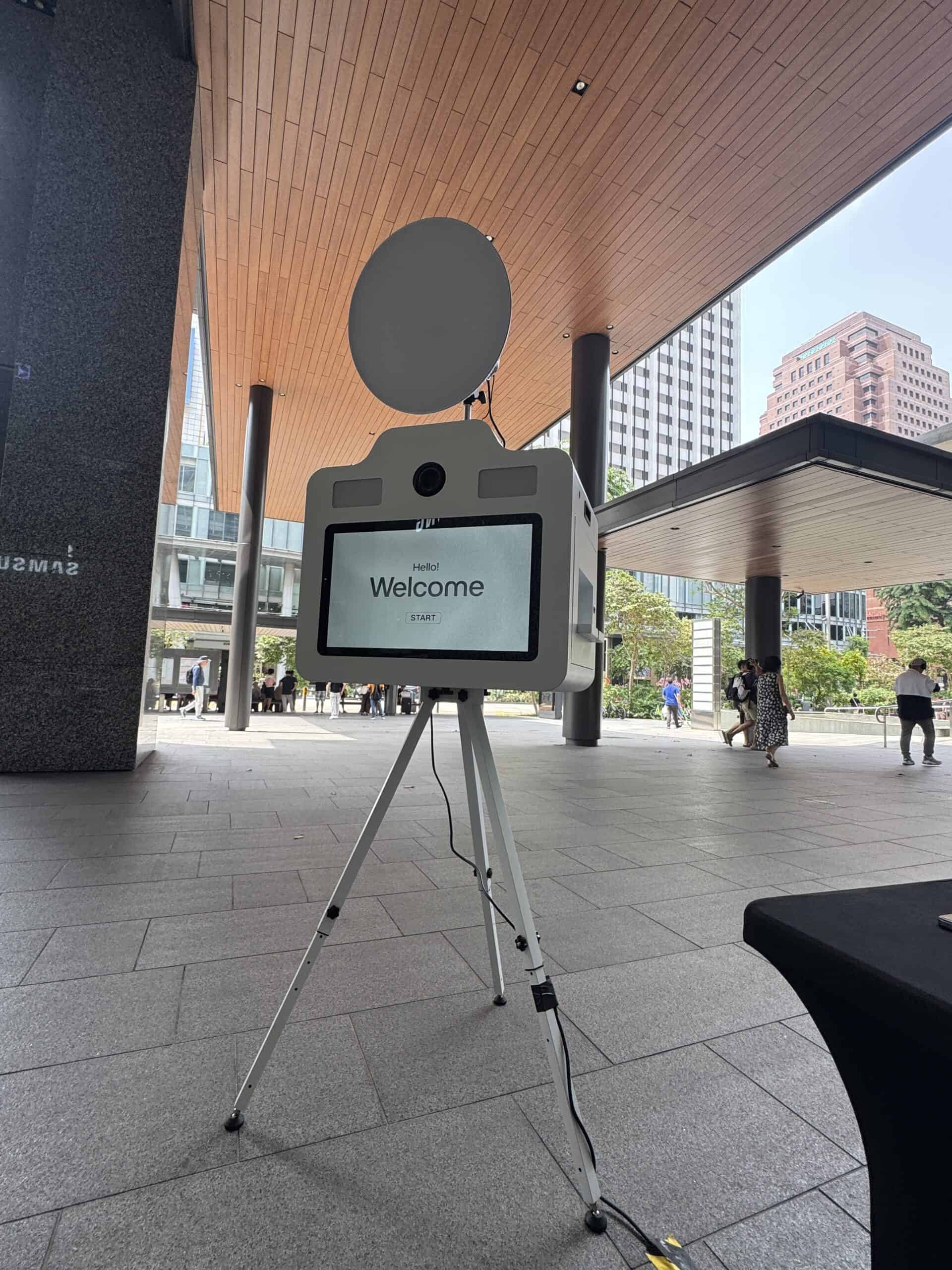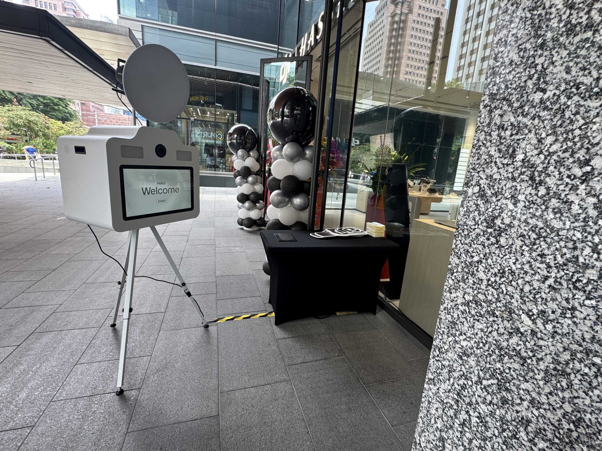 As you can see from the set up photos below, our AI Virtual Background Photo Booth does not require any physical backdrop on site. In fact, guests were standing in front of a pillar to have their photos captured. Our software can detect human silhouette in high precision and remove the background accordingly.